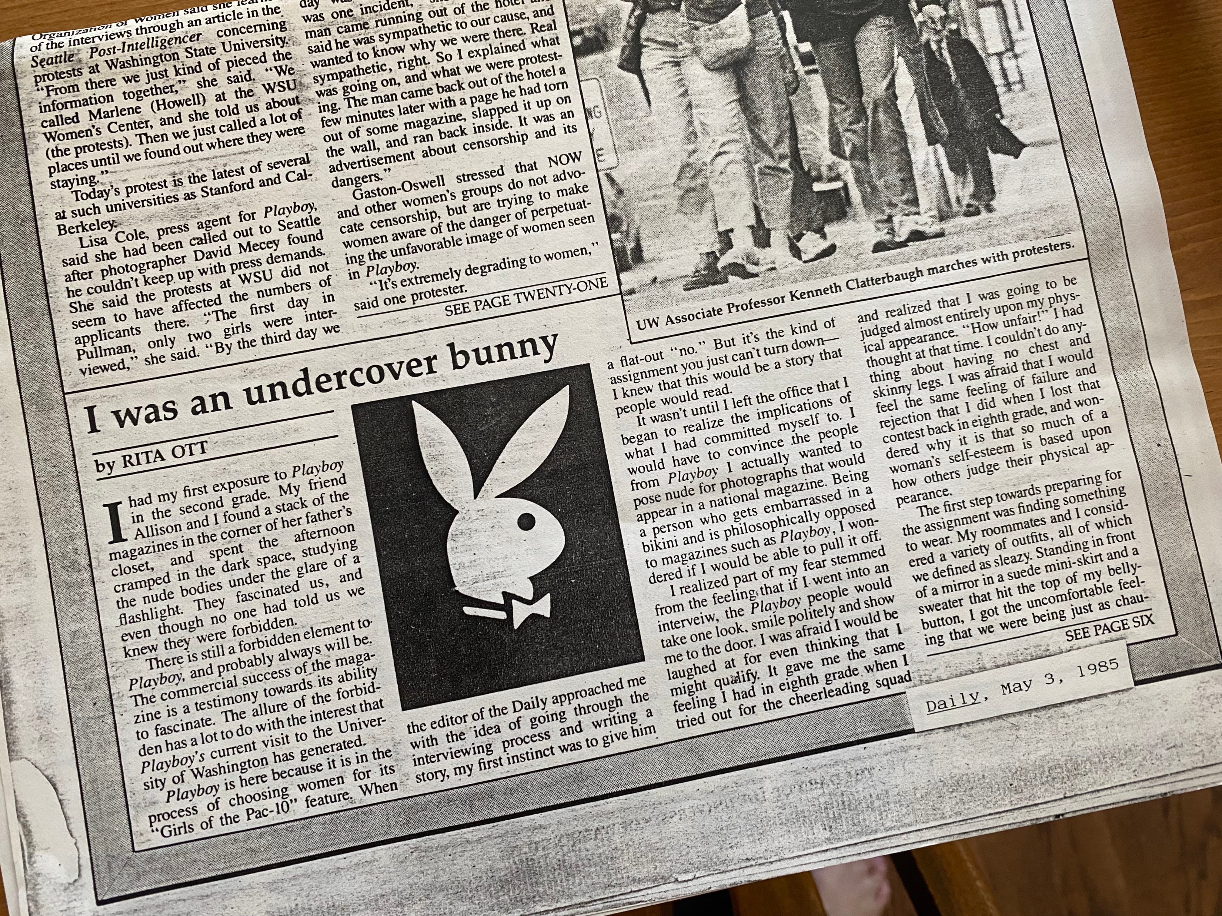 We are preparing me for my latest reporting assignment for the University of Washington’s student newspaper, The Daily. I am going undercover to report on Playboy magazine’s recruitment of women for an upcoming “Girls of the Pac-10” feature. I have an appointment to meet with a photographer to have photos taken.