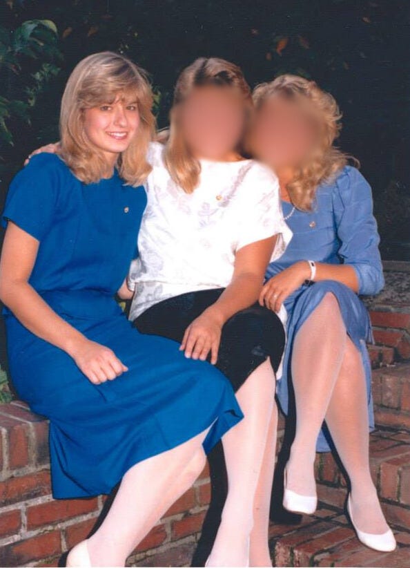 I am standing in front of my sorority roommates and a mirror. We are all looking at my reflection. It is May, 1985, and I am wearing my favorite grey and pink plaid ankle-length pants with a pink polo shirt and a pair of White Mountain moccasins.